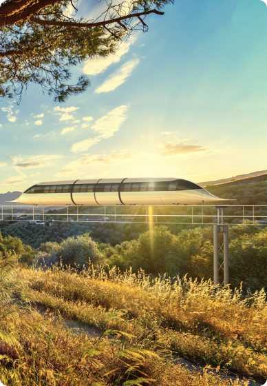 Cruise up to 373 mph-redefining fast in high-speed transport. Engineered for eco-friendliness and minimal land impact-zero carbon compromise.